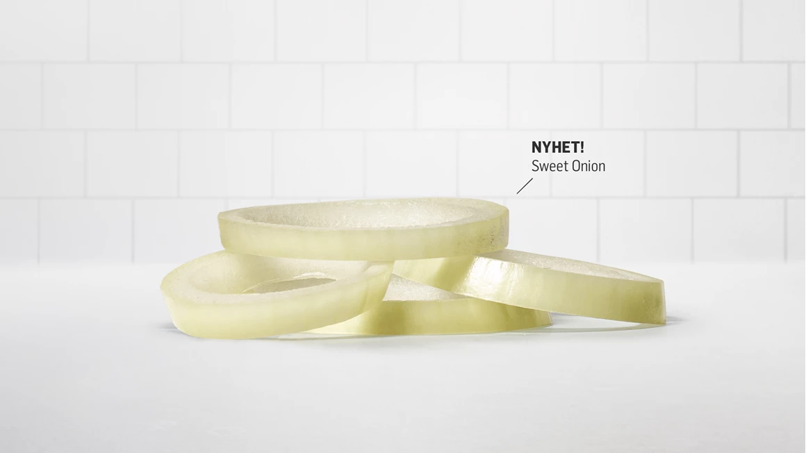 Litt mindre skarp og litt søtere enn den gule løken du er vant til. Dessuten er den sprøere enn noen annen løk vi har møtt på, uansett farge. Så nå bytter vi ut løken på burgerne våre med den nye, gule favoritten vår. For godt, men kanskje ikke for alltid. Jakten på det som er enda bedre, fortsetter nemlig.